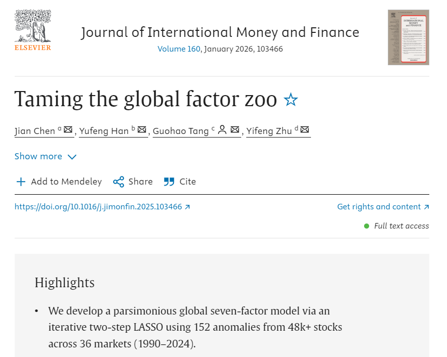 近日,金融与统计线上真人百家乐 金融科技与工程系唐国豪副教授合作的金融人工智能领域类论文“Taming the Global Factor Zoo”发表在《Journal of International Money and Finance》2026年第1期上。