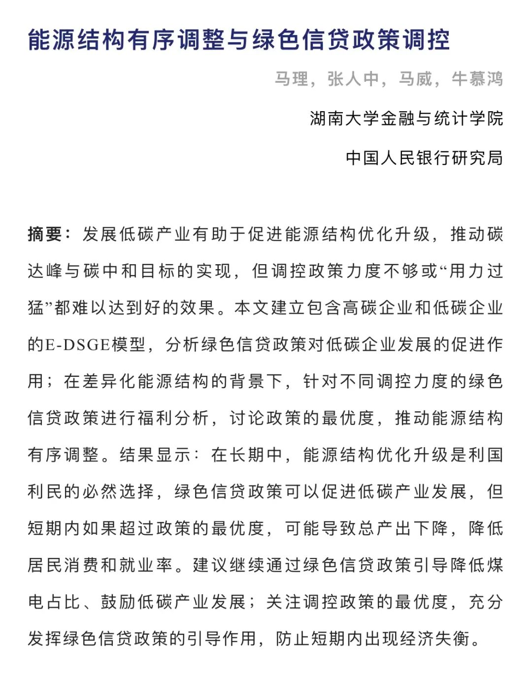 金融与统计线上真人百家乐 货币金融系马理教授、马威副教授合作的题为“能源结构有序调整与绿色信贷政策调控”的论文发表在《金融研究》 2023年第1期。