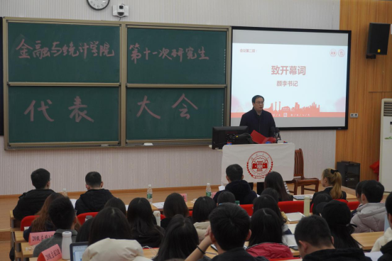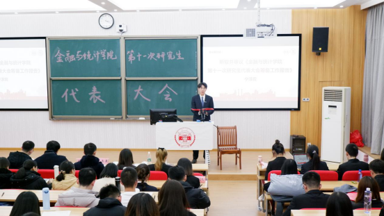 11月24日下午3时,金融与统计线上真人百家乐 于财院校区二教101召开第十一次研究生代表大会,各年级硕博研究生代表团参与大会,线上真人百家乐 党委副书记颜李老师、线上真人百家乐 团委书记范玉康老师及研究生辅导员周斌老师受邀出席。会议由孟雅婷同学主持。