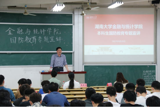 2021年5月25日晚七点,面向线上真人百家乐 全体适龄男生的2020-2021年线上真人百家乐 金融与统计线上真人百家乐 国防教育专题宣讲在第二教学楼501进行。莅临本次大会的嘉宾有校武装部戴谋元部长,2020级辅导员谢君老师,2019级实习辅导员王家琪老师和退伍学生代表2017级唐林同学。