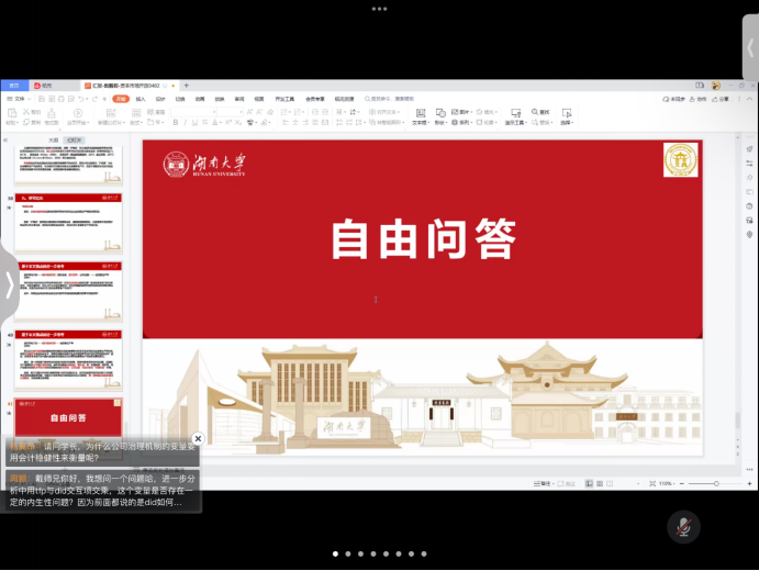 活动最后,现场进行了问答互动,戴鹏毅就同学们提出的有关变量的衡量以及研究中可能出现的内生性问题等做出了解答并提供了宝贵的建议,本期博士创新论坛在大家的感谢中圆满结束。相信本次论坛的成功举办,能够进一步加深线上真人百家乐研究生在哲学社会科学类论文选题、写作的认识与理解,对提高研究生科研素养具有重要意义。