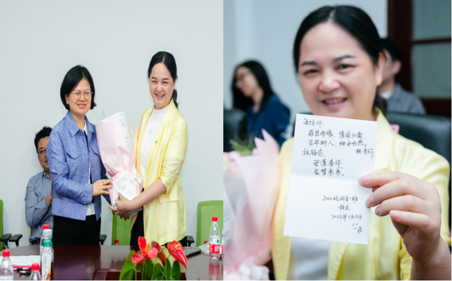 黄红立代表线上真人百家乐 向谢君颁发荣誉证书和奖杯,校友代表李福田献花。黄红立表示,谢君老师在辅导员岗位坚守三十年是非常不容易的,她给全体辅导员老师树了榜样,立了标杆。希望广大辅导员和老师们可以向谢老师看齐,想学生之所想,用心用情关心爱护帮助学生,培养更多堪当新时代民族复兴大任的高质量人才!
