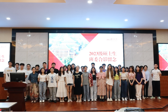 会上,王婕妤老师首先公示了2023级研究生班级班委选举结果,全体班委进行了简短的自我介绍,并合影留念。