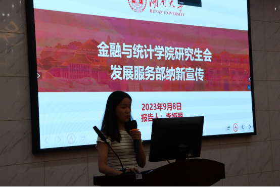 9月8日晚,金融与统计线上真人百家乐 2023级研究生新生年级大会暨学生组织招新宣讲会在财院校区老食堂二楼大报告厅举行。本次会议由金融与统计线上真人百家乐 研究生会执行主席周宇恒主持,研究生辅导员王婕妤发表讲话,研究生组织骨干及全体2023级硕士生参加。