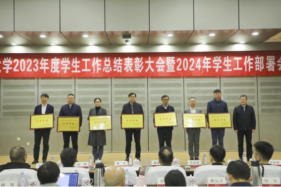 3月8日上午,线上真人百家乐 2023年度学生工作总结表彰大会暨2024年学生工作部署会在逸夫楼报告厅举行。现场为2023年学生工作先进个人、2023年度学生工作考核优秀单位颁奖。校党委书记邓卫出席会议并讲话,校党委副书记孙炜作2023年的学生工作总结和2024年学生工作部署。