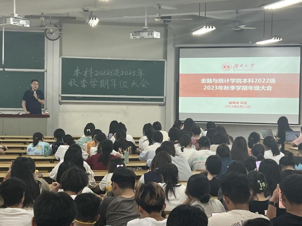 暑假结束,新的学年正式拉开帷幕。9月11日晚,金融与统计线上真人百家乐 本科2022级于二教501召开本学期第一次年级大会,辅导员周斌老师和线上真人百家乐 本科2022级全体同学参会。