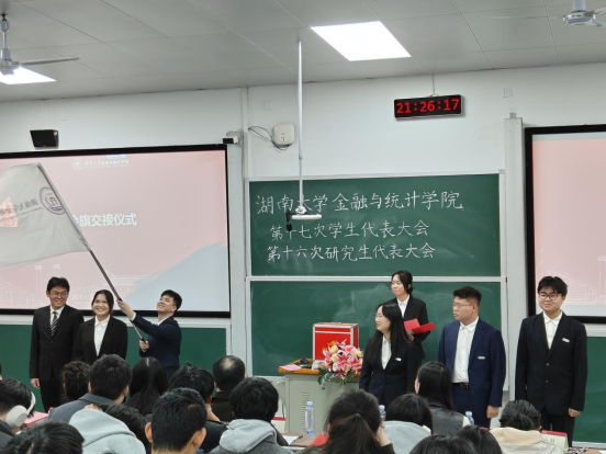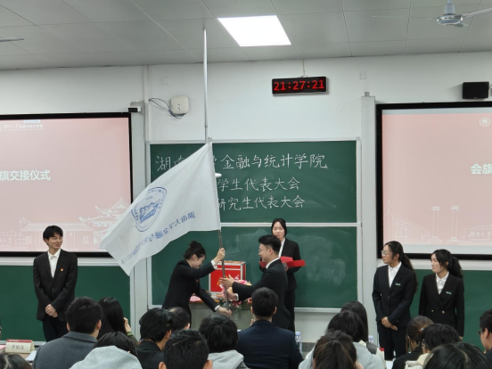 与会代表审议并通过了《线上真人百家乐 金融与统计线上真人百家乐 第十七届学生会主席团候选人名单(草案)》和《线上真人百家乐 金融与统计线上真人百家乐 第十六届研究生会主席团候选人名单(草案)》等文件。主席团候选人依次上台介绍自身情况,经过民主表决与无记名投票,大会最终选举出刘丹阳、匡启泽、王震坤三人为第十七届学生会主席团成员,刘泊麟、王欣怡、熊蕾三人为第十六届研究生会主席团成员。会旗交接仪式标志着新一届学生会与研究生会主席团的正式诞生。