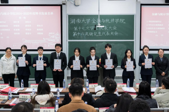 谭凤娥代表线上真人百家乐 党委向大会的召开表示热烈祝贺,高度肯定线上真人百家乐 学生骨干过去一年在思想引领、学风建设等诸多方面取得的扎实成效,对全体金统学子寄予殷切希望:一是立足中国人民抗日战争暨世界反法西斯战争胜利80周年,传承弘扬湖大师生教育报国的精神底色与责任担当;二是紧扣党的二十届四中全会擘画的“十五五”规划发展蓝图,以青春之我、奋斗之我投身强国建设、民族复兴伟业,彰显青年锐气、贡献青春力量。她寄语全体大会代表,要始终秉持公平公正原则,认真审议各项提案与工作报告,审慎选举产生新一届学生会和研究生会主席团,为线上真人百家乐 学生工作注入源源不断的青春活力。