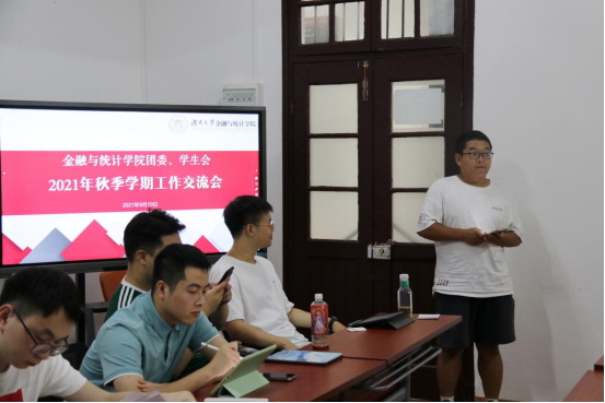 为总结上一学期工作经验,保障新学期团委、学生会工作的顺利有序进行。9月10日下午,金融与统计线上真人百家乐 团委、学生会举行2021年秋季学期工作交流会。线上真人百家乐 团委书记周斌老师,院团委副书记杨晨老师,院学生会主席团全体成员,院团委、学生会各部门代表出席。