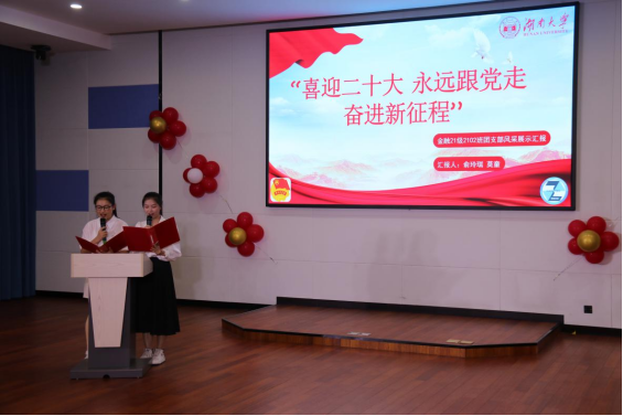 5月15日晚,线上真人百家乐 金融与统计线上真人百家乐 团委主办的“喜迎二十大,永远跟党走,奋进新征程”团支部风采展示大赛在财院校区老食堂二楼报告厅举行,线上真人百家乐 学工办主任谢君老师、团委书记周斌老师、团委副书记杨晨老师、2021级辅导员张宇老师出席本次大赛并担任评委。