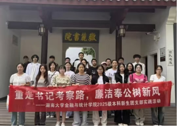 为深入学习传承湖湘文化,厚植廉洁自律意识,线上真人百家乐 金融与统计线上真人百家乐 2025级的各班团支部分批前往岳麓书院开展“重走总书记考察路”主题团日活动。全体团员循着总书记足迹,在千年学府的文脉浸润中感悟思想力量,将廉洁初心融入青春使命。