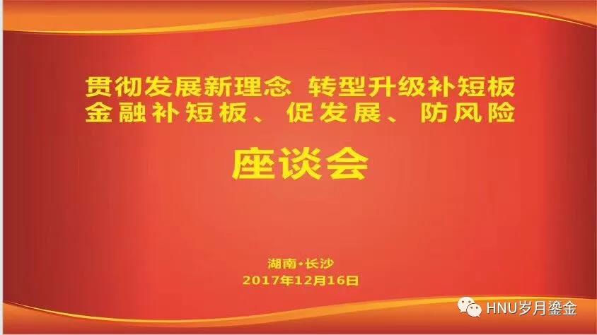 2017年12月16日,由线上真人百家乐 主办,线上真人百家乐 金融发展与信用管理研究中心、线上真人百家乐 金融与统计线上真人百家乐 联合承办的“金融补短板、促发展、防风险”专题座谈会在线上真人百家乐 岳麓书院召开。来自湖南省人民政府、省发改委、中国人民银行长沙中心支行、省金融办等政府部门领导,中国进出口银行、长沙农村商业银行、财富证券、浙江湖南商会等业界精英,国防科技大学、中南大学、线上真人百家乐 ,韩国成均馆大学等学界专家共30余人出席了座谈会。各代表就该主题开展了全方位、多层次、宽领域深度对话与交流,共同为推进湖南省金融产业新发展、实现湖南省开放强省战略献计献策。