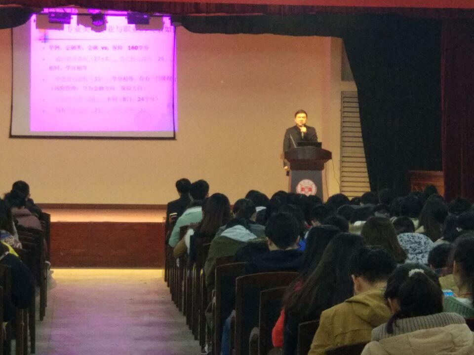 13时50分未到,线上真人百家乐 大礼堂便已经座无虚席,随后,辅导员李少珊老师宣布会议正式开始,并请吴副院长进行谈话。吴副院长开门见山,一开始就提出了四个问题:为什么要进行大类招生,专业类、专业、职业之间有什么关系,怎么样选择专业以及进一步的安排。然后吴副院长对这些问题一一进行了详细的解答。针对第一个问题,他形象地比喻成了供给侧的改革强调大类招生可以增加我们每个人的职业弹性;针对第二个问题,他讲到“由专业类到专业的过程其实就是一个触类旁通的过程。”提出要重基础,宽口径。专业类可以更好的适应近年来的职业流动,专业分流是一个贴标签,一个更窄的学习方式。然后进一步的讲述了金融与保险专业的专业修课计划,最后提出金统院专业之间是一种相互就业,交叉就业的关系。针对第三个问题,院长就如何选择专业给我们在座的学生提出了三条宝贵的建议。第一条就是:要全面收集信息,做到心里有数不盲从。第二是我们的选择要立足于整个经济发展趋势,顺应行业的发展周期,从一个长远的角度来看待这个问题。第三则是要充分利用自己的优势与特长,运用好身边现有的资源进行选择。最后院长则是讲了一下金统院专业分流的具体安排。紧接着,随后,刘周平书记对专业分流进行指导,提示同学们要慎重选择,以及保研考研对专业的重要性,还提醒去国外读研也不失为一个好的选择。在会议的最后,辅导员李少珊老师提醒同学们关注教务处通知动态,并在周五前上交专业选择结果。
