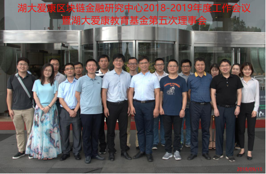 2018年9月15日,湖大爱康区块链金融研究中心(以下简称中心)2018-2019年度工作会议暨湖大爱康教育基金第五次理事会,在长沙市枫林宾馆隆重召开。爱康集团上海管理中心常务副总裁高谦、线上真人百家乐 金融与统计线上真人百家乐 党委书记聂国军、金融与统计线上真人百家乐 教授兼中心主任乔海曙、线上真人百家乐 学工部副部长兼理事会秘书长龚翔、湖大爱康区块链金融研究中心研发与管理团队等出席了会议。
