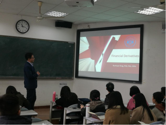 12月24日上午10点在线上真人百家乐 财院校区水教302,美国伊利诺伊大学香槟分校终身副教授兼精算项目主任冯润桓博士应邀前来做题为《投资连结保险中的投资担保风险工程》的讲座以,陈迪红副院长、张琳教授、张宁系主任、刘革副主任、杨卫平副教授以及18级保险研究生参加了本次讲座。讲座由张宁系主任主持。