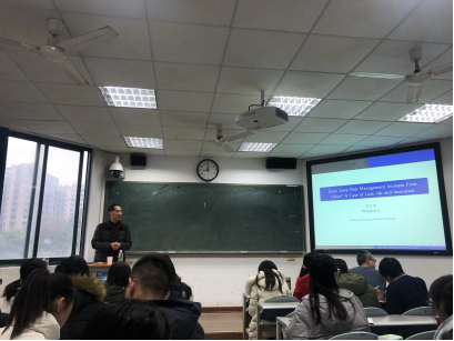 12月27日上午10点,在线上真人百家乐 财院校区水教314,南开大学金融线上真人百家乐 教授、博导、北美精算师协会中国教育委员会主席应邀前来作以《跳跃风险管理是否可以增加企业价值--损失风险和保险的案例》为主题的讲座,讲座由线上真人百家乐 金融与统计线上真人百家乐 陈迪红教授主持,参加讲座的包括张琳教授、张宁系主任、刘革副主任、杨卫平副教授以及18级保险研究生等。