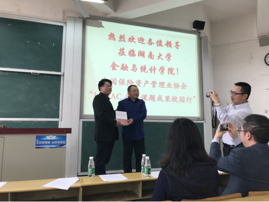 致辞结束之后,刘传葵副秘书长向金融与统计线上真人百家乐 赠送了《课题专著》,聂国军书记向中国保险资产管理业协会赠送了《岳麓书院学规》。