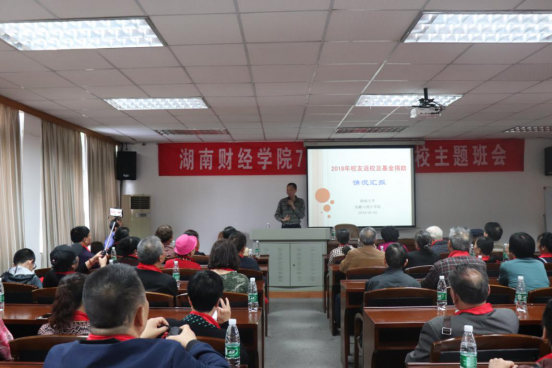 在简短的开场白后,聂国军书记首先致辞。聂书记重点向校友们介绍了财院校区现状和今后的发展规划,并说明了金统院矢志一流追求卓越的发展情况。聂书记从湖南财经线上真人百家乐 历史讲起,它培养出了众多优秀校友,对我国当今金融行业有很大影响力。而湖南财经线上真人百家乐 和线上真人百家乐 的深度融合,也会为社会输送更多人才。校友们对金统院的发展充满信心与期待,近年来线上真人百家乐 组织了各类校友返校活动,让校友们都能感受到当年的点点滴滴。院长助理段进还对2018年校友返校及基金捐助的情况进行了汇报。