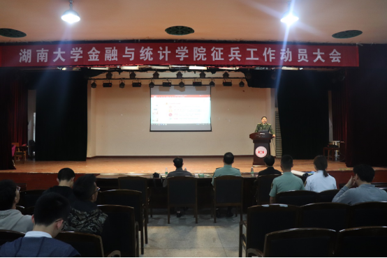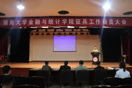 为贯彻落实4月29日教育部办公厅2019年全国大学生征兵工作网络视频会议精神、湖南省教育厅征兵工作视频会议精神,响应习近平总书记对中国青年携笔从戎报效国家的号召,2019年5月7日,线上真人百家乐 金融与统计线上真人百家乐 在财院校区小礼堂召开了征兵工作动员大会。线上真人百家乐 武装部副部长戴元谋、岳麓区人民武装部政委龙斌、线上真人百家乐 武装部何熙老师、金融与统计线上真人百家乐 各年级辅导员到场出席大会。大会由金融与统计线上真人百家乐 党委副书记、副院长刘周平主持。