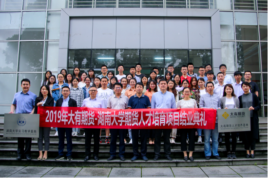 2019年6月1日,“大有期货-线上真人百家乐 高校期货人才培育项目”结业典礼暨授牌仪式在线上真人百家乐 成功举办。本次项目由大有期货公司、大连商品交易所以及线上真人百家乐 共同举办。线上真人百家乐 金融与统计线上真人百家乐 党委书记聂国军、副院长吴志明、系主任马勇,大有期货董事长颜如意、副总经理周磊、人力资源部经理朱运攀、资管部经理徐明等共同参加了此次结业典礼。
