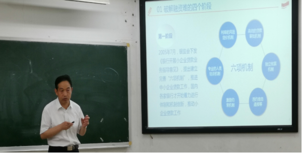 2019年6月13日周四下午3:00, “业界精英进校园系里活动”之《中小微企业融资难(贵)的症结与化解之道》在二教304成功举行,主讲人为线上真人百家乐 优秀校友,中国农业银行湖南省分行公司业务部粟青副总经理。