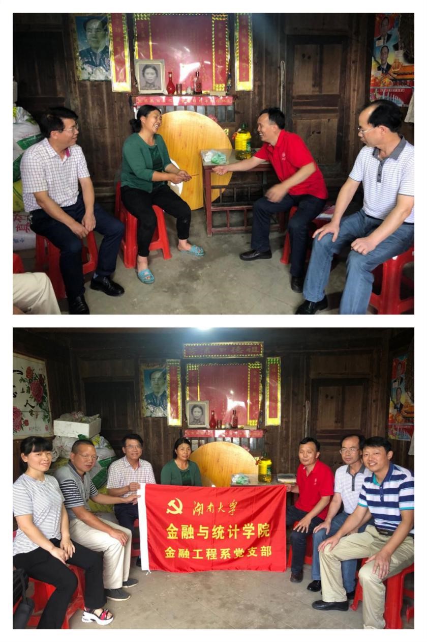 当帮扶队伍刚刚走到白水洞村村口,就远远看到81岁的杨廷清老人早已坐在屋外等候。“老人家,你好吗?我是上次给您打过慰问电话的线上真人百家乐 的罗斌,您记吗?”“记得记得,罗书记,屋里坐!”老人连忙起身热情的招呼着。“我平时不开灯,但是今天贵客来了,我要把灯打开”。杨廷清老人年岁已高,早已丧失劳动能力,自与货币金融系党支部建立结对帮扶以来,老人家成为支部的牵挂。支部书记罗斌将慰问金和慰问物资送到老人手中,院党委书记聂国军及支部委员与老人亲切交谈,将关怀送到空巢老人心中。