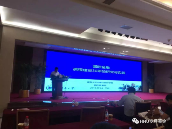 兰州财经大线上真人百家乐 党委书记傅德印教授、河南财经政法大线上真人百家乐 长高新才教授、甘肃省教育厅高等教育处副处长姜言卿、高等教育出版社经管分社副社长郭金录分别致辞。研讨会上,杨胜刚教授与胡金焱教授、邹新月教授、李建军教授、刘莉亚教授、梁琪教授等5位教育部金融类专业教指委委员以及其他6位一线的教学科研名师受邀发言。其中,杨胜刚教授发言的题目是“传承+创新、精品+共享:《国际金融学》三十年课程建设的理论与实践”。