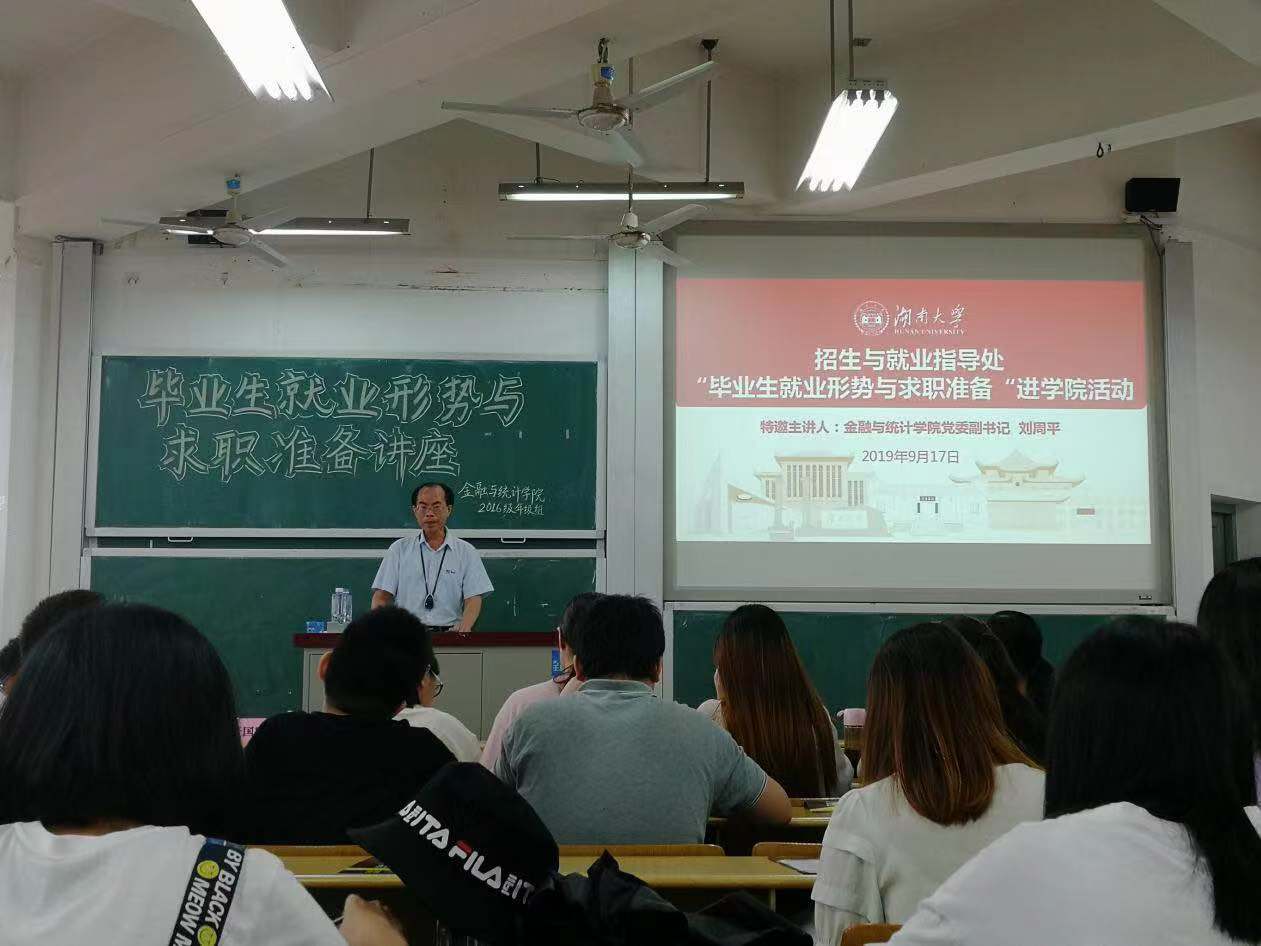 2019917日,线上真人百家乐 金融与统计线上真人百家乐 2016级年级组举办了毕业生就业形势与求职、毕业准备讲座。线上真人百家乐 金融与统计线上真人百家乐 党委副书记刘周平主讲,2016级辅导员谢君老师以及全体2016级同学出席了此次会议。此次会议旨在为同学们提供就业形势方面的信息和求职方面的指导以及就业前的准备工作。