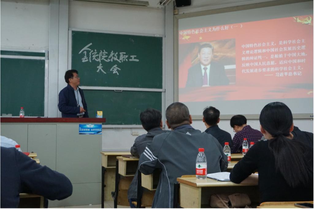 10月8日下午,线上真人百家乐 金融与统计线上真人百家乐 在二教召开 “不忘初心,牢记使命”主题教育系列辅导报告会,深入学习习近平总书记在庆祝中华人民共和国成立70周年大会上的重要讲话、开展“不忘初心,牢记使命”主题教育辅导报告之“爱国主义教育”专题教育报告学习及教工党支部改选工作。线上真人百家乐 领导班子成员、全体教职工参加会议。潘敏院长主持会议。