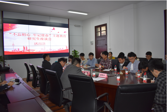 2019年10月18日上午,金融与统计线上真人百家乐 在财院校区红楼326会议室召开了“不忘初心,牢记使命”主题教育研究生座谈会。线上真人百家乐 党委书记聂国军,院长潘敏,副院长李海奇,研究生管理办罗俊杰主任与各级硕士、博士研究生学生代表共聚一堂,共同探讨有关线上真人百家乐 发展的关键性问题。
