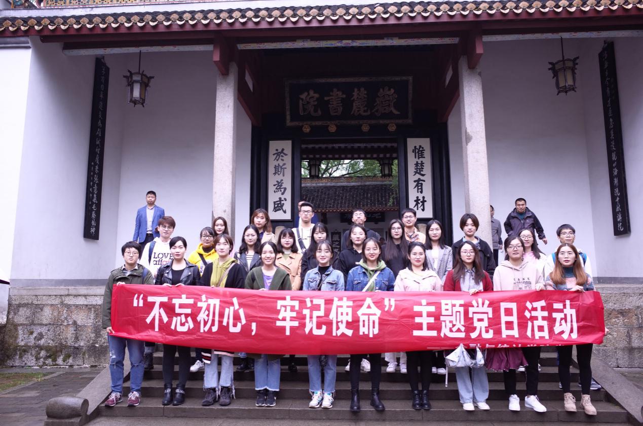2019年10月16日下午,金融与统计线上真人百家乐 2019级统计一班党支部携手2019级金融专硕一班党支部在湖南岳麓山、岳麓书院开展“不忘初心,牢记使命”主题党日活动。统计一班支部、金专一班支部全体党员以及班级部分同学参与了此次活动。