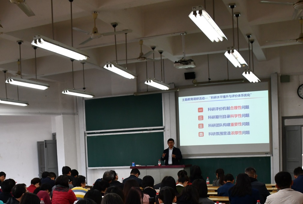 王修华副院长就前期开展的“科研水平提升与评价体系优化”主题调研活动进行了汇报与总结;对近期的科研工作安排展开部署并对“研究阐释党的十九届四中全会精神国家社科重大项目”展开动员。王修华副院长指出十九届四中全会标志着党对国家制度和国家治理体系的认识升华到一个新高度、新视野、新水平,具有里程碑意义,要求老师们高度重视本次会议精神,基于前期的研究基础,以现实问题为导向,选择相关的研究领域积极开展研究。同时线上真人百家乐 已全面展开申报意愿摸底调查工作,要求老师们注意把握国家课题申报的时间,与线上真人百家乐 、线上真人百家乐 合拍共振。