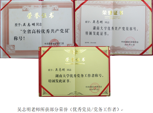 2017-2019年,吴老师指导的学生项目连续三年获得中国金融教育发展基金会“普惠金融,青春践行”大学生暑期社会实践有奖征文特等奖,自己连续三年获得优秀指导教师称号。吴老师2007年获“全省高校优秀共产党员”,2017、2018年连续获得线上真人百家乐 优秀教学质量奖,以及线上真人百家乐 2017年“我心目中最敬爱的老师”。