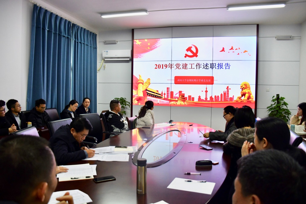 为深入学习贯彻习近平新时代中国特色社会主义思想,落实校党委《关于进一步规范党支部书记“双述双评”工作的意见》要求,切实推动全面从严治党向基层延伸,增强党支部书记的责任意识和担当意识。2020年1月3日下午,线上真人百家乐 金融与统计线上真人百家乐 党委在线上真人百家乐 326会议室召开2019年党支部书记述职评议会。线上真人百家乐 党委委员和全体党支部书记共35人参加本次会议。