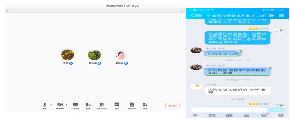 自1月30日开始,团队积极组织线上真人百家乐 老师参与教务处组织的各类在线教学平台讲座。重点与学堂在线(雨课堂)、超星(学习通)等在线学习平台沟通交流,为给线上真人百家乐 教师提供更好在线技术支持服务平台,熊晓鸽奖教金获得者、校优秀教学秘书、院本科教学管理办公室主任李晖老师主动搭建金统院在线学习交流群。