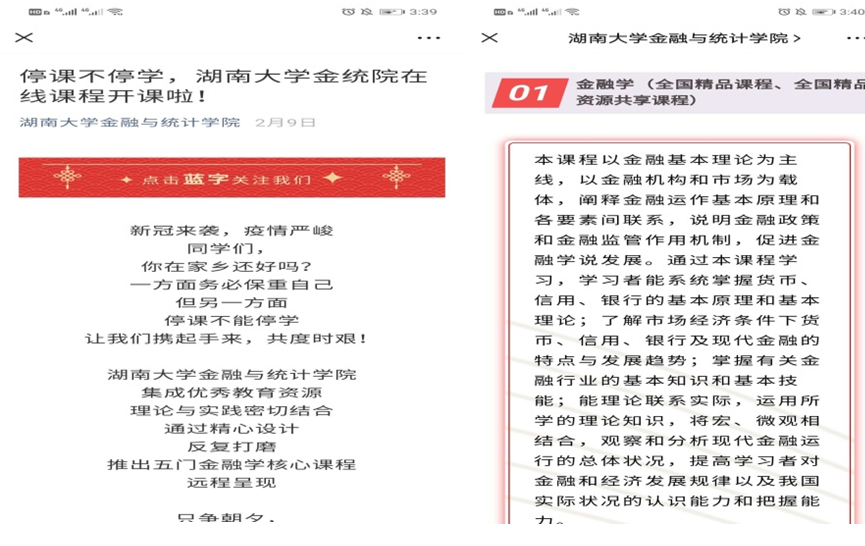 2月5日,为了更好推介线上真人百家乐 五门金融学MOOC核心在线开放课程,本科教学管理团队在吴志明副院长的组织下,通过微信公众号刊发:“停课不停学,线上真人百家乐 金统院在线课程开课啦!”新闻报道,收到良好的社会反响。