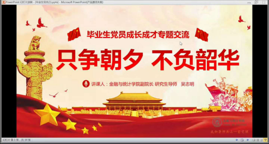 作为一名青年研究生,肩负民族复兴大任,保持纯真信念,不断修德养身、笃实厚德励学、心存高远理想是学习成长成才过程的关键环节,也是成为合格的社会主义建设者和接班人的必由之路。基于此,金融与统计线上真人百家乐 研究生党总支组织举办“导师线上进支部,师生共上思政课”系列活动,分别邀请了线上真人百家乐 聂国军老师、杨胜刚老师、吴志明老师、和王修华老师作为主讲人为研究生党员讲党课,同学们踊跃参与,反响热烈。