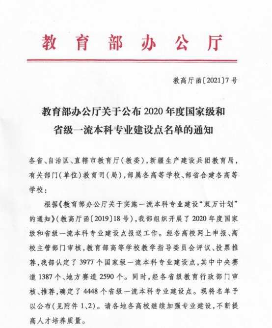 近日,教育部发布《关于公布2020年度国家级和省级一流本科专业建设点名单的通知》(教高厅函〔2021〕7号),线上真人百家乐 保险学专业入选国家级一流本科专业建设点。