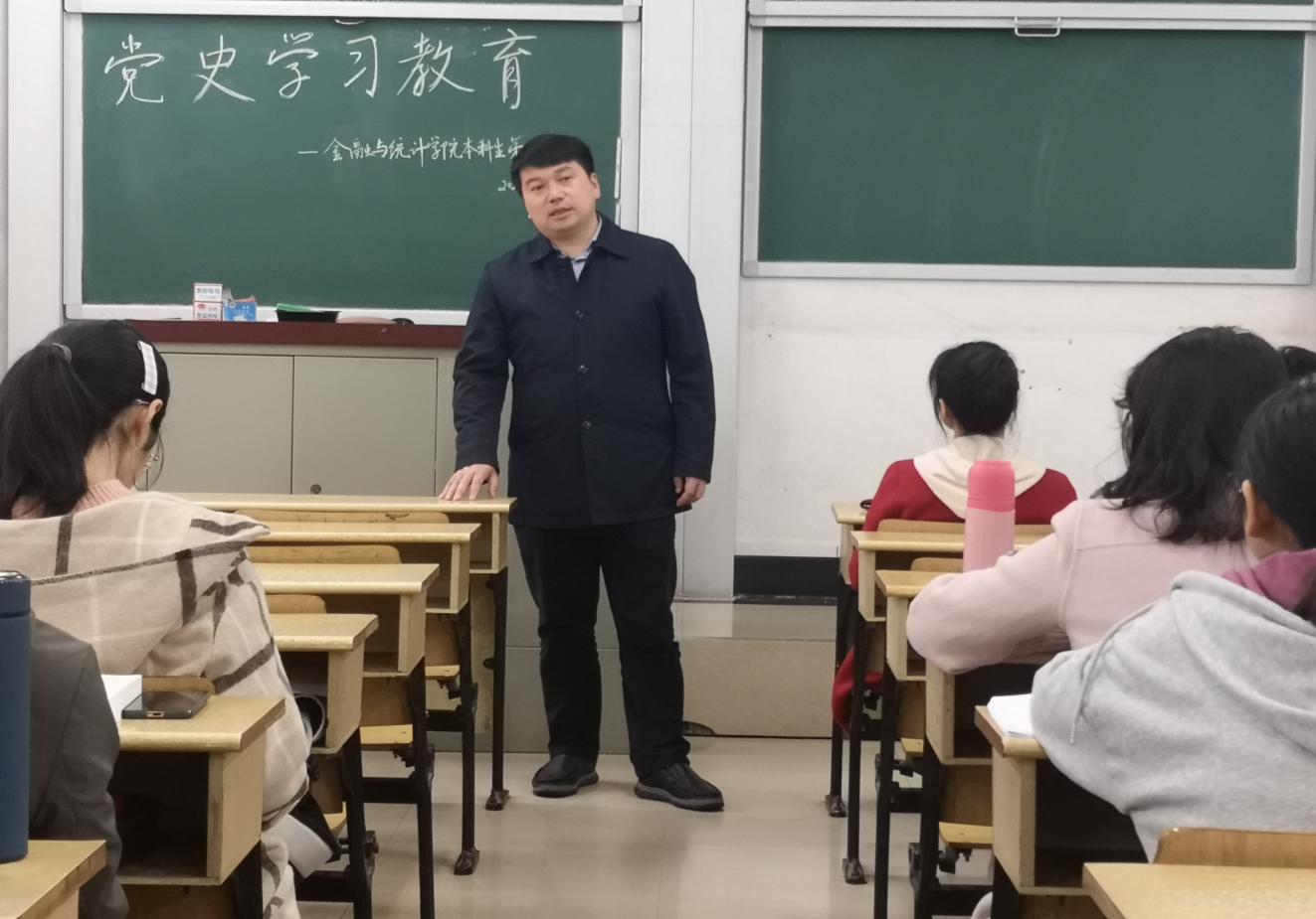 4月14日,金融与统计线上真人百家乐 本科生第一党支部在二教102举行“党史学习教育”主题党日活动。通过学习同志们对党的历史有了更加深刻的认知,也深感自己担负的使命与责任之重。新时代的青年党员应当继承前辈遗志,学知识强本领,为中华民族的伟大复兴奉献自己的力量。金融与统计线上真人百家乐 党委书记黄红立受邀参加了此次活动。
