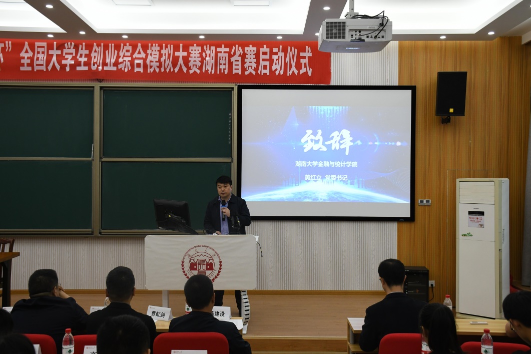 湖南省高教学会商科实践教学专业委员会代表、长沙理工大学谢朝华副院长致辞时表示希望通过本次大赛,为大学生双创教育与实践培育新动能,用新动能推动新发展,以新发展创造双创教育与实践的新辉煌。