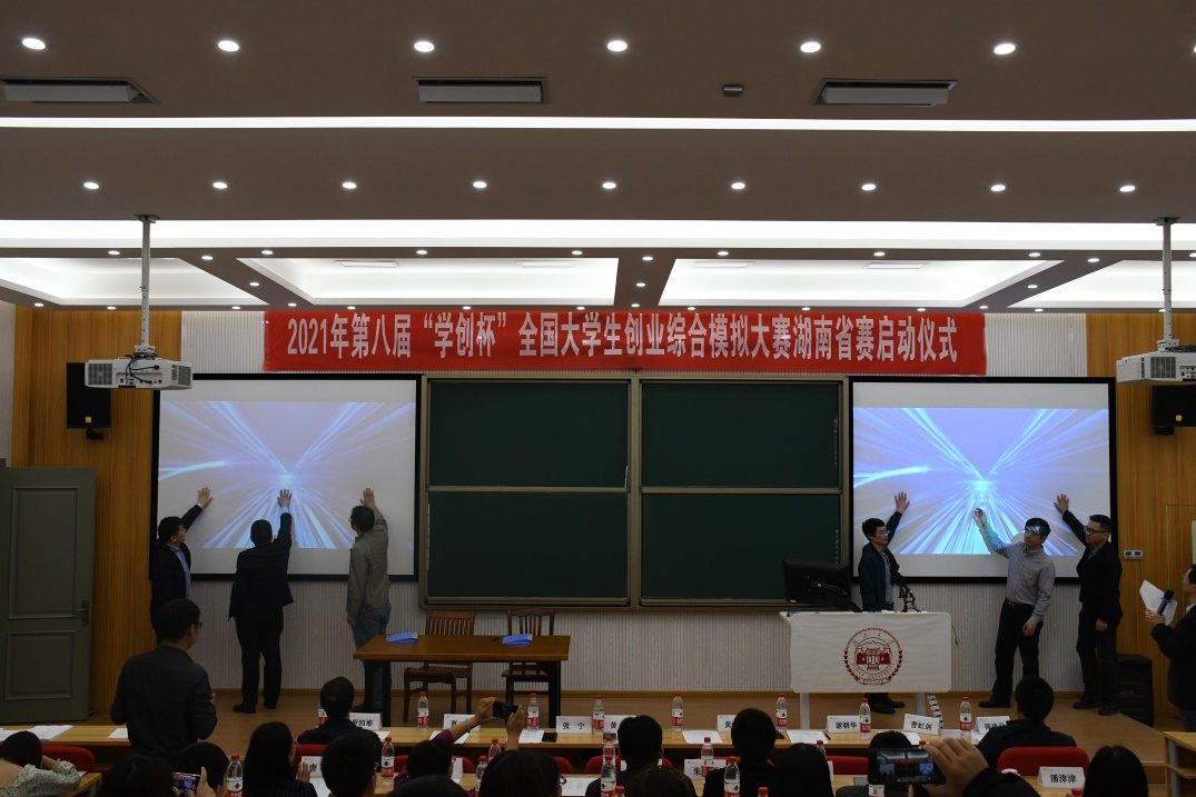5月22日上午,2021年第八届“学创杯”全国大学生创业综合模拟大赛湖南省赛启动仪式在线上真人百家乐 财院校区举行。本届大赛湖南赛区选拔赛由教育部高等线上真人百家乐 国家级实验教学示范中心联席会经济与管理学科组主办,线上真人百家乐 金融与统计线上真人百家乐 承办,贝腾教育发展集团协办。金统院党委书记黄红立、副院长张宁,经贸院副院长曹二保,湖南省高教学会商科实践教学专业委员会代表、长沙理工大学经济与管理线上真人百家乐 副院长谢朝华,湖南师范大学线上真人百家乐 副院长曹虹剑等40余家院校领导、指导老师和学生代表出席了启动仪式。贝腾教育发展集团董事长黄林出席活动并对赛事做了介绍。启动仪式成立了大赛湖南赛区组委会,金统院副院长张宁担任组委会主任,线上真人百家乐 实验室主任王天轶担任秘书长并主持了活动。