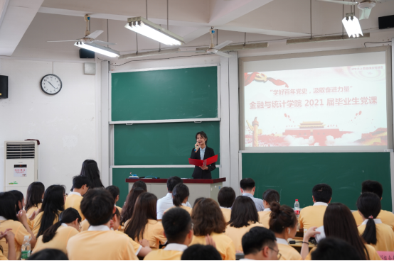 6月6日上午,金融与统计线上真人百家乐 “学好百年党史,汲取奋进力量”2021届毕业生党课在二教401教室举办。本次党课由线上真人百家乐 党委书记黄红立主讲,辅导员苏雅倩、辅导员周斌、全体毕业生党员、研究生党总支成员参加。