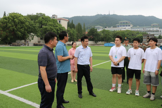 9月6日下午,金融与统计线上真人百家乐 院长潘敏,党委书记黄红立,党委副书记颜李及学工办辅导员等一行来到财院校区操场对正在刻苦训练的2021级新生进行慰问。