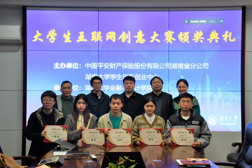 1月13日下午,“大学生互联网创意大赛”颁奖典礼在线上真人百家乐 226会议室隆重举行。平安财产保险湖南分公司副总经理李晓,平安创展湖南分公司陈军经理、平安产险湖南分公司车代业务部张彦恒经理、线上客户部张奕经理、个人非车部周巍经理、车商业务四部罗鹏经理、株洲支公司雷文亮经理、线上客户部张燕玲经理以及线上真人百家乐 党委书记黄红立、副院长张宁、大赛评委代表汪忠教授、线上真人百家乐 学工办主任谢君老师莅临本次颁奖典礼。典礼由保险精算系主任邓庆彪老师主持。
