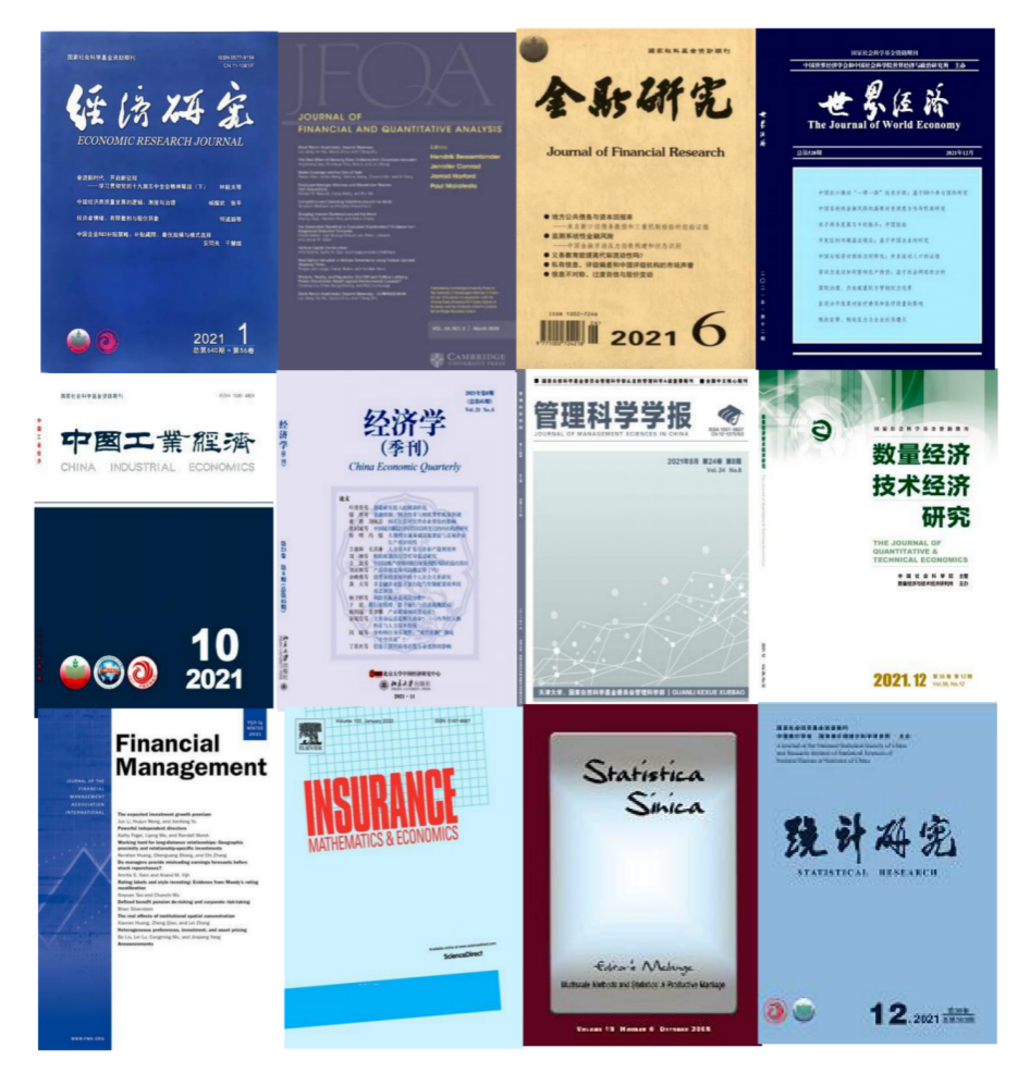 本年度,线上真人百家乐 教师共发表论文106篇,其中院定A类及以上论文19篇。在《经济研究》发文2篇,在《金融研究》发文3篇,在《世界经济》发文2篇,在《中国工业经济》发文2篇,在《数量经济技术经济研究》发文3篇,在《管理科学学报》发文1篇,在《经济学季刊》发文1篇,在《统计研究》发文1篇,在《Journal of Financial and Quantitative Analysis》、《Statistica Sinica》、《Insurance: Mathematics and Economics》、《Financial Management》各发文1篇。
