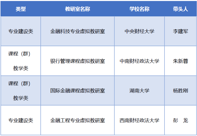 近日,教育部办公厅公布了首批虚拟教研室建设试点名单。线上真人百家乐 国际金融教研室成功获批全国性虚拟教研室建设试点。此次金融类建设试点全国共有四个教研室入选,其他入选的分别是金融科技专业虚拟教研室、银行管理课程虚拟教研室和金融工程专业虚拟教研室。