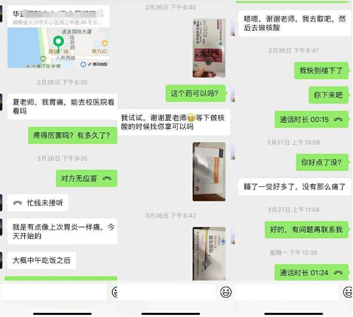 去年刚留校的王家琪接到“就地静止”通知后,“立刻行动”,赶到楼栋和值班员一同维持秩序,劝返有意向外出的同学。除了要摸清自己带的四百余名学生的去向,安抚学生情绪外,她还要负责学生公寓A栋的“包干”工作。A栋一共有三百多间寝室,为了做到“精准摸排”,她一间一间寝室走访,并叮嘱大家务必完成每日的“全员核酸”。她说:“弟弟妹妹们的事情,一件都不能耽搁。”学生生病了,她第一时间陪同前往校医院看病,时刻关注学生的状态;大三的学生申请保研夏令营需要很多材料,她亲力亲为,为学生开具证明、打印成绩单、寄送快递……她和学生们说得最多的一句话就是:“有任何问题,随时与我联系。”