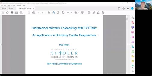 5月12日上午,由线上真人百家乐 金融与统计线上真人百家乐 主办的第343期金融与统计论坛在线上腾讯会议顺利举办。本次讲座由线上真人百家乐 金融与统计线上真人百家乐 副院长张宁教授主持,邀请来自美国夏威夷大学马诺阿分校的陈铧教授做题为《死亡率预测与准备金充足率研究》的学术讲座。保险精算系毕达宁老师、何玲瑀老师等50余名师生积极参加了此次讲座。