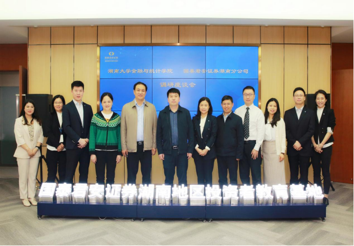 随后,黄红立一行前往活动第二站,在国泰君安股份有限公司湖南省分公司党委书记、总经理胡兰等领导的陪同和基地讲解员的引导下,实地参观国泰君安证券湖南地区投资者教育基地,并通过座谈会的形式了解公司近年在用人育人、干部培养上的政策以及校友的工作、生活和发展情况,听取用人单位对线上真人百家乐 毕业生的满意度和毕业生对线上真人百家乐 的意见建议,双方就后续在实习基地建立、管培生培养、助学就业、投教进校园,甚至助推校企战略合作等工作上达成共识。