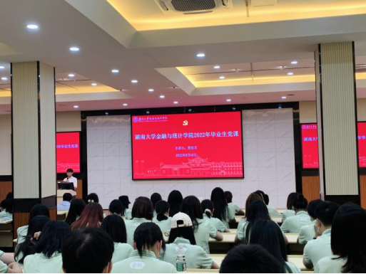 6月16日上午,金融与统计线上真人百家乐 “守初心砥砺奋进,担使命勇往直前”2022届毕业生党员党课在财院校区老食堂报告厅举办。本次党课由线上真人百家乐 党委书记黄红立老师主讲,研究生辅导员周斌老师,本科生辅导员张宇老师、研究生党建服务中心骨干、全体毕业生党员参加。
